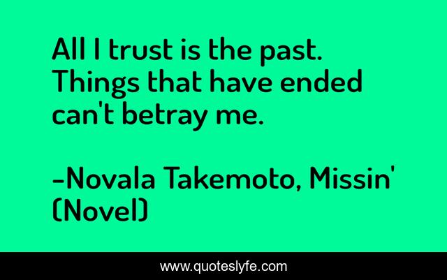This page presents the quote "All I trust is the past. Things that have ended can't betray me.". Author of this quote is Novala Takemoto, Missin' (Novel). .
