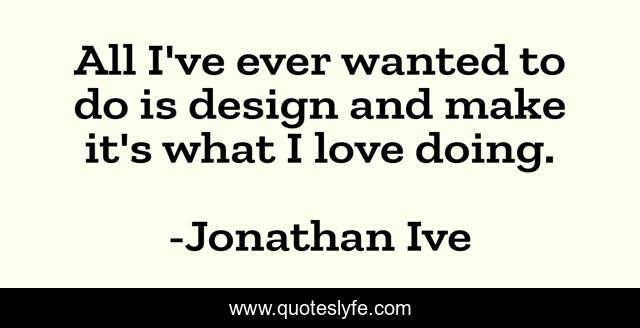 This page presents the quote "All I've ever wanted to do is design and make it's what I love doing.". Author of this quote is Jonathan Ive. This quote is about wanted, love, affection,.