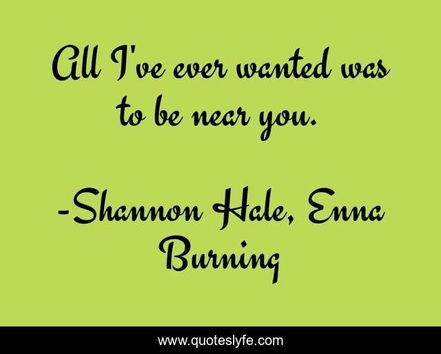 This page presents the quote "All I've ever wanted was to be near you.". Author of this quote is Shannon Hale, Enna Burning. .