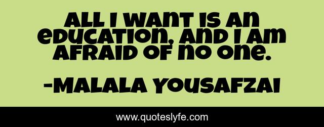 This page presents the quote "All I want is an education, and I am afraid of no one.". Author of this quote is Malala Yousafzai. .