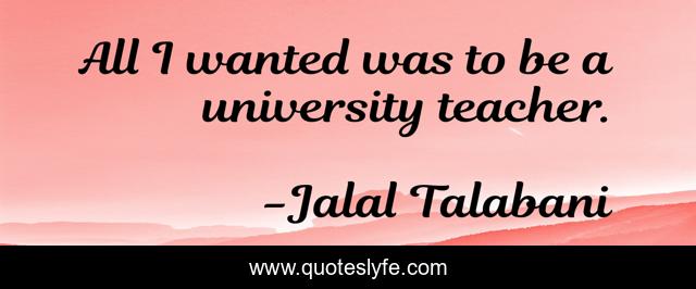 This page presents the quote "All I wanted was to be a university teacher.". Author of this quote is Jalal Talabani. This quote is about university, wanted,.