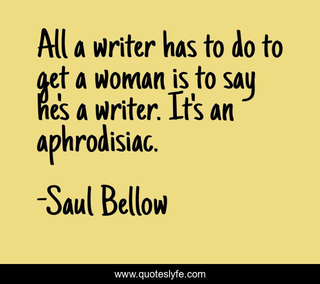 This page presents the quote "All a writer has to do to get a woman is to say he's a writer. It's an aphrodisiac.". Author of this quote is Saul Bellow. This quote is about writers, writing,.