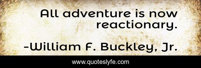 This page presents the quote "All adventure is now reactionary.". Author of this quote is William F. Buckley, Jr.. This quote is about now, adventure, reactionary,.