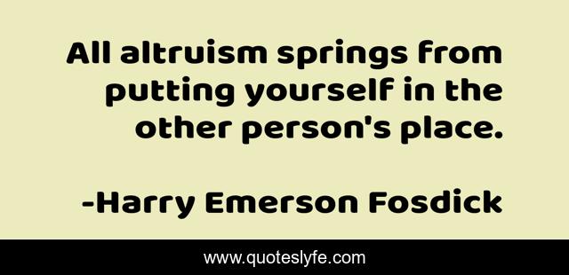 This page presents the quote "All altruism springs from putting yourself in the other person's place.". Author of this quote is Harry Emerson Fosdick. This quote is about helping, people,.