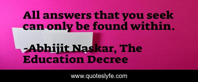 "Abhijit Naskar, The Education Decree Quotes." Quoteslyfe.com, 2025. Fri. 05 Dec. 2025. <https://www.quoteslyfe.com/quote/All-answers-that-you-seek-can-only-123913>.