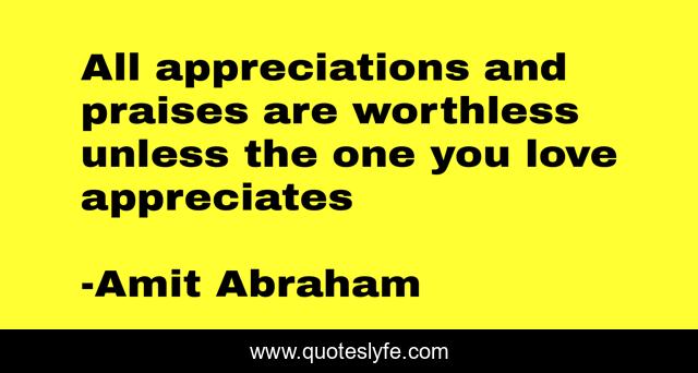 "Amit Abraham Quotes." Quoteslyfe.com, 2025. Mon. 08 Dec. 2025. <https://www.quoteslyfe.com/quote/All-appreciations-and-praises-are-worthless-unless-240518>.