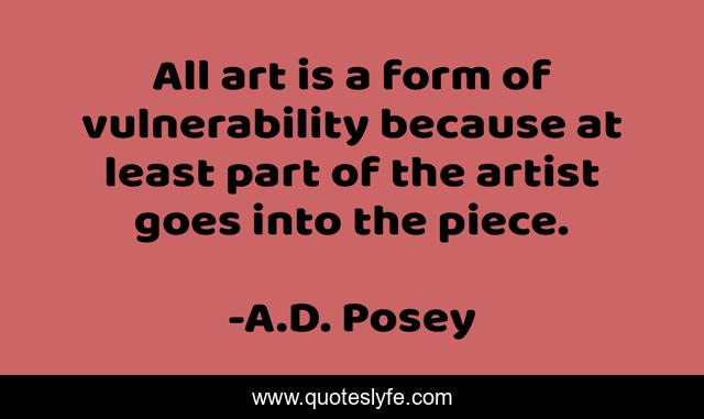 "A.D. Posey Quotes." Quoteslyfe.com, 2025. Fri. 05 Dec. 2025. <https://www.quoteslyfe.com/quote/All-art-is-a-form-of-vulnerability-66397>.