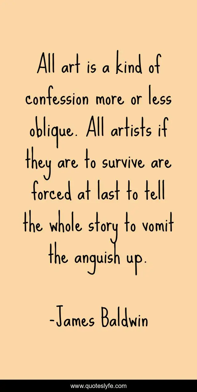 "James Baldwin Quotes." Quoteslyfe.com, 2025. Fri. 05 Dec. 2025. <https://www.quoteslyfe.com/quote/All-art-is-a-kind-of-confession-260482>.