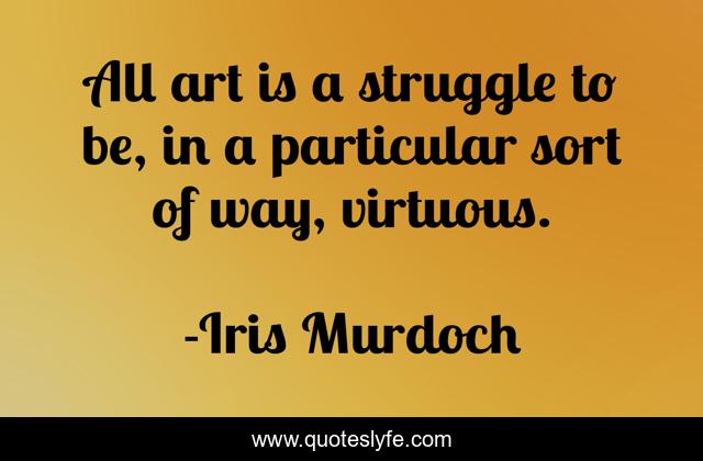 This page presents the quote "All art is a struggle to be, in a particular sort of way, virtuous.". Author of this quote is Iris Murdoch. This quote is about virtuous, struggle, way,.