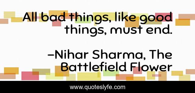 "Nihar Sharma, The Battlefield Flower Quotes." Quoteslyfe.com, 2025. Sat. 06 Dec. 2025. <https://www.quoteslyfe.com/quote/All-bad-things-like-good-things-must-183299>.