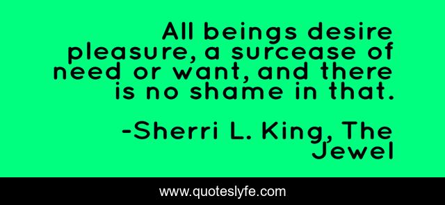 This page presents the quote "All beings desire pleasure, a surcease of need or want, and there is no shame in that.". Author of this quote is Sherri L. King, The Jewel. This quote is about desire, pleasure,.
