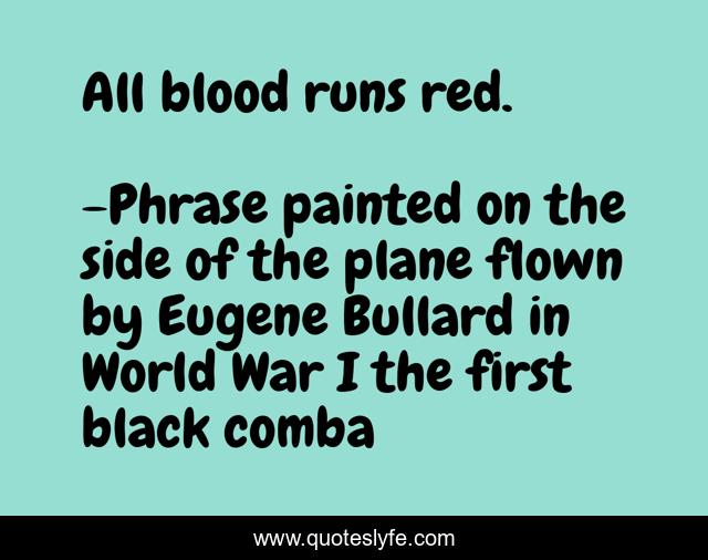 "Phrase painted on the side of the plane flown by Eugene Bullard in World War I the first black comba Quotes." Quoteslyfe.com, 2025. Sun. 07 Dec. 2025. <https://www.quoteslyfe.com/quote/All-blood-runs-red-208446>.