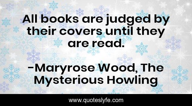 "Maryrose Wood, The Mysterious Howling Quotes." Quoteslyfe.com, 2025. Tue. 09 Dec. 2025. <https://www.quoteslyfe.com/quote/All-books-are-judged-by-their-covers-238346>.