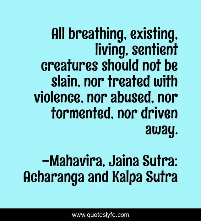 "Mahavira, Jaina Sutra: Acharanga and Kalpa Sutra Quotes." Quoteslyfe.com, 2025. Mon. 08 Dec. 2025. <https://www.quoteslyfe.com/quote/All-breathing-existing-living-sentient-creatures-should-136682>.