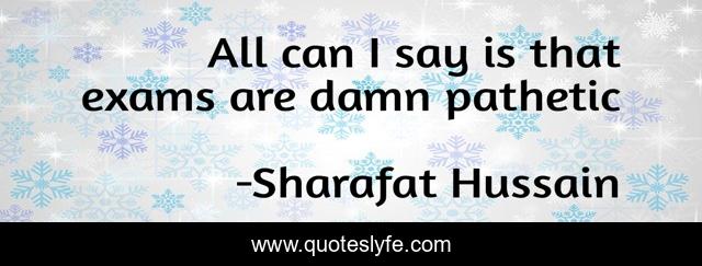 This page presents the quote "All can I say is that exams are damn pathetic". Author of this quote is Sharafat Hussain. This quote is about funny, comedy,.