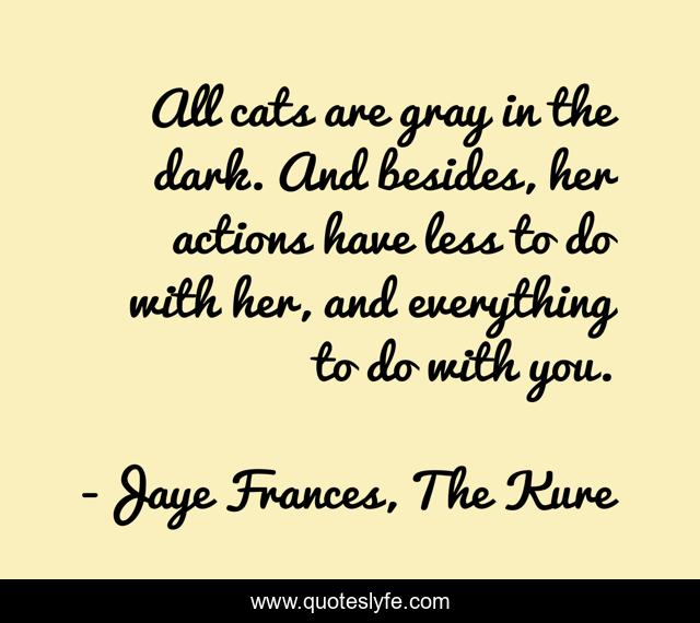 "Jaye Frances, The Kure Quotes." Quoteslyfe.com, 2025. Tue. 09 Dec. 2025. <https://www.quoteslyfe.com/quote/All-cats-are-gray-in-the-dark-131602>.