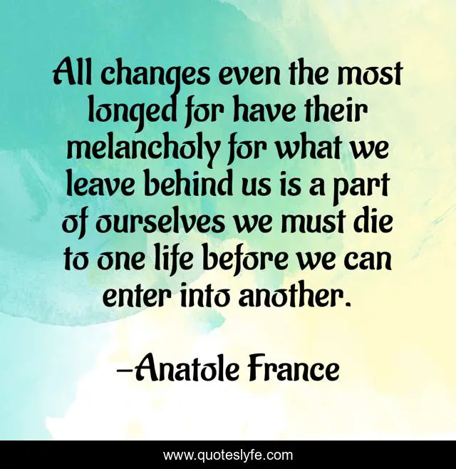 This page presents the quote "All changes even the most longed for have their melancholy for what we leave behind us is a part of ourselves we must die to one life before we can enter into another.". Author of this quote is Anatole France. This quote is about positive, confidence, creating, change,.