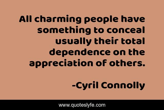 This page presents the quote "All charming people have something to conceal usually their total dependence on the appreciation of others.". Author of this quote is Cyril Connolly. .