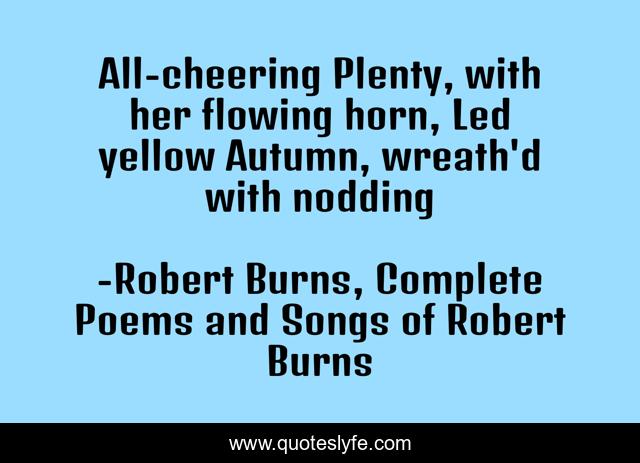 This page presents the quote "All-cheering Plenty, with her flowing horn, Led yellow Autumn, wreath'd with nodding". Author of this quote is Robert Burns, Complete Poems and Songs of Robert Burns. This quote is about autumn, seasons, harvest, fall,.