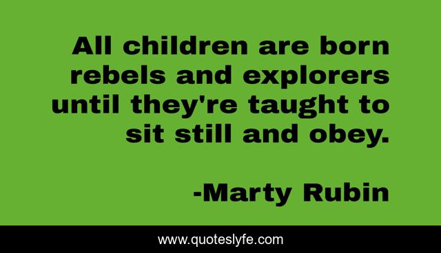 This page presents the quote "All children are born rebels and explorers until they're taught to sit still and obey.". Author of this quote is Marty Rubin. This quote is about explorers, wonder, children, obedience, rebellion,.