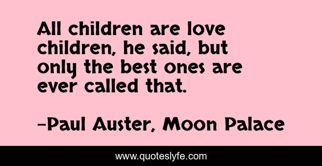 This page presents the quote "All children are love children, he said, but only the best ones are ever called that.". Author of this quote is Paul Auster, Moon Palace. This quote is about auster, palace, moon, love, children, affection,.