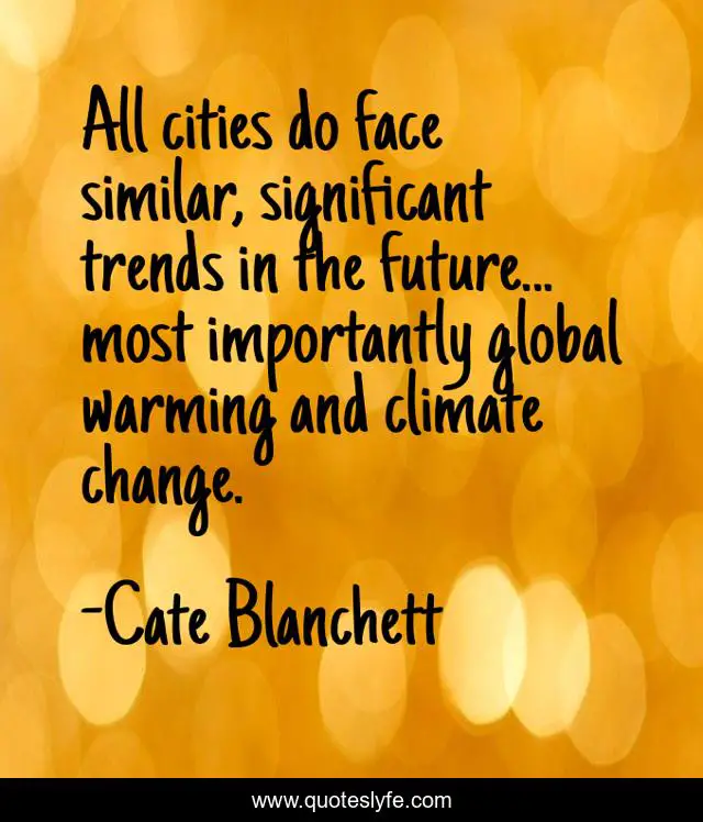 This page presents the quote "All cities do face similar, significant trends in the future... most importantly global warming and climate change.". Author of this quote is Cate Blanchett. This quote is about change, global warming,.