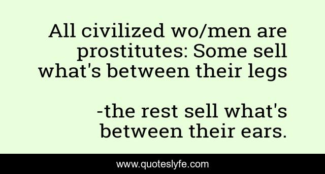 This page presents the quote "All civilized wo/men are prostitutes: Some sell what's between their legs". Author of this quote is the rest sell what's between their ears.. .