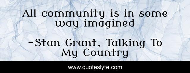This page presents the quote "All community is in some way imagined". Author of this quote is Stan Grant, Talking To My Country. .