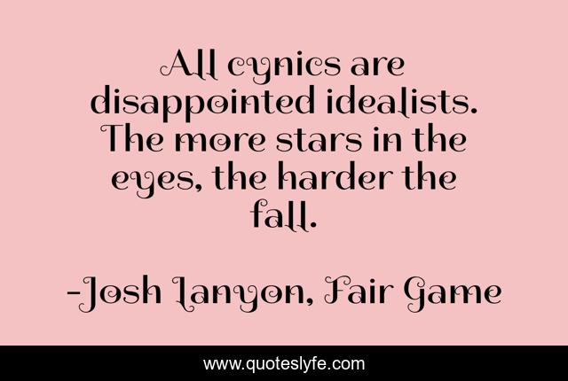 "Josh Lanyon, Fair Game Quotes." Quoteslyfe.com, 2025. Fri. 05 Dec. 2025. <https://www.quoteslyfe.com/quote/All-cynics-are-disappointed-idealists-The-more-9258>.