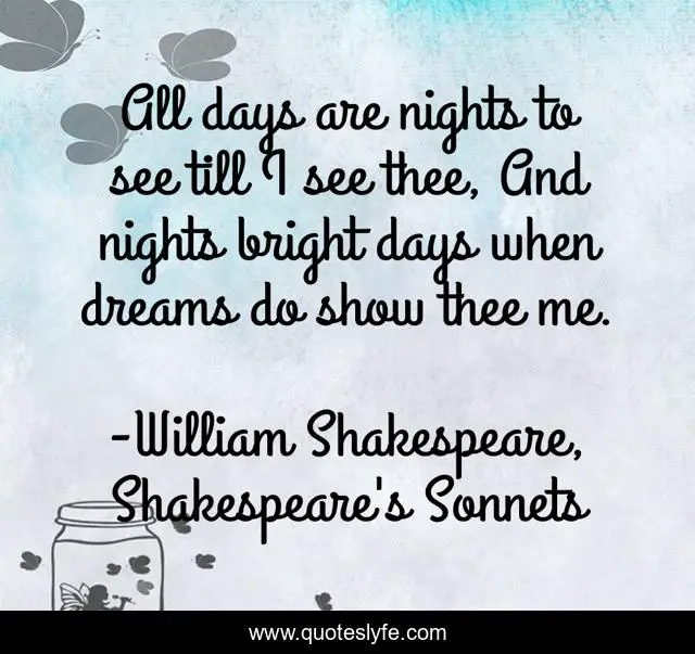 "William Shakespeare, Shakespeare's Sonnets Quotes." Quoteslyfe.com, 2025. Tue. 09 Dec. 2025. <https://www.quoteslyfe.com/quote/All-days-are-nights-to-see-till-24712>.