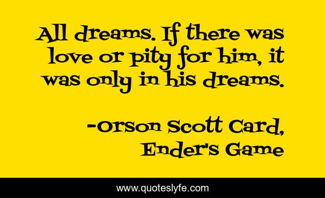 This page presents the quote "All dreams. If there was love or pity for him, it was only in his dreams.". Author of this quote is Orson Scott Card, Ender's Game. This quote is about despair, dreams,.