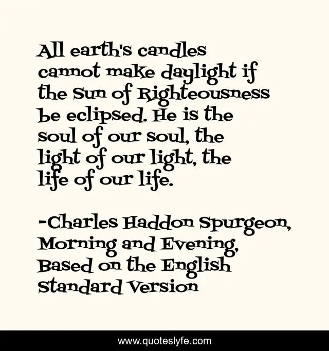 "Charles Haddon Spurgeon, Morning and Evening, Based on the English Standard Version Quotes." Quoteslyfe.com, 2025. Mon. 08 Dec. 2025. <https://www.quoteslyfe.com/quote/All-earth-s-candles-cannot-make-daylight-196584>.