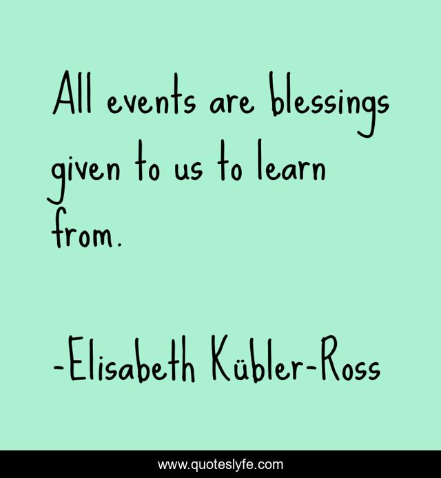 This page presents the quote "All events are blessings given to us to learn from.". Author of this quote is Elisabeth Kübler-Ross. .