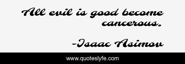 This page presents the quote "All evil is good become cancerous.". Author of this quote is Isaac Asimov. This quote is about life, evil,.