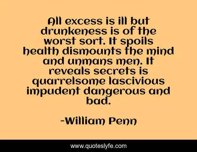 "William Penn Quotes." Quoteslyfe.com, 2025. Fri. 05 Dec. 2025. <https://www.quoteslyfe.com/quote/All-excess-is-ill-but-drunkeness-is-263494>.