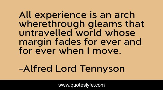 "Alfred Lord Tennyson Quotes." Quoteslyfe.com, 2025. Sat. 06 Dec. 2025. <https://www.quoteslyfe.com/quote/All-experience-is-an-arch-wherethrough-gleams-307523>.