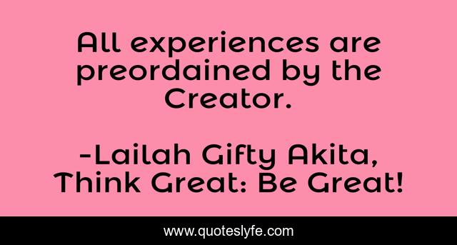 "Lailah Gifty Akita, Think Great: Be Great! Quotes." Quoteslyfe.com, 2025. Sat. 06 Dec. 2025. <https://www.quoteslyfe.com/quote/All-experiences-are-preordained-by-the-Creator-76341>.