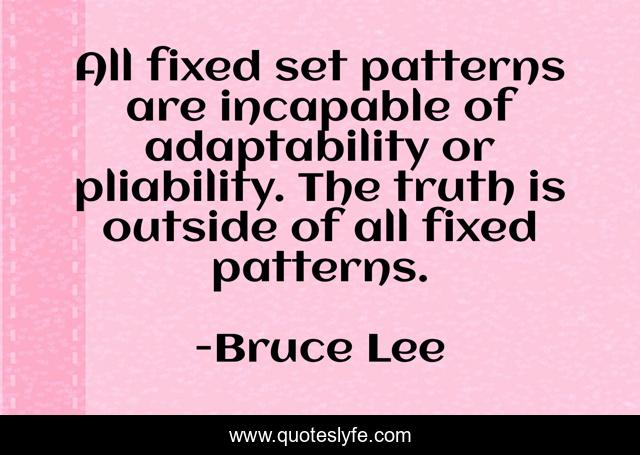 "Bruce Lee Quotes." Quoteslyfe.com, 2025. Sat. 06 Dec. 2025. <https://www.quoteslyfe.com/quote/All-fixed-set-patterns-are-incapable-of-10004>.