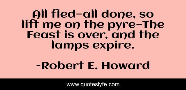 This page presents the quote "All fled—all done, so lift me on the pyre—The Feast is over, and the lamps expire.". Author of this quote is Robert E. Howard. This quote is about horror, cthulhu, lovecraft,.