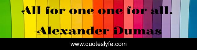 This page presents the quote "All for one one for all.". Author of this quote is Alexander Dumas. .