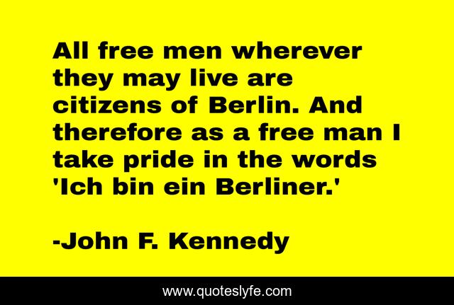 All free men wherever they may live are citizens of Berlin. And therefore as a free man I take pride in the words 'Ich bin ein Berliner.'