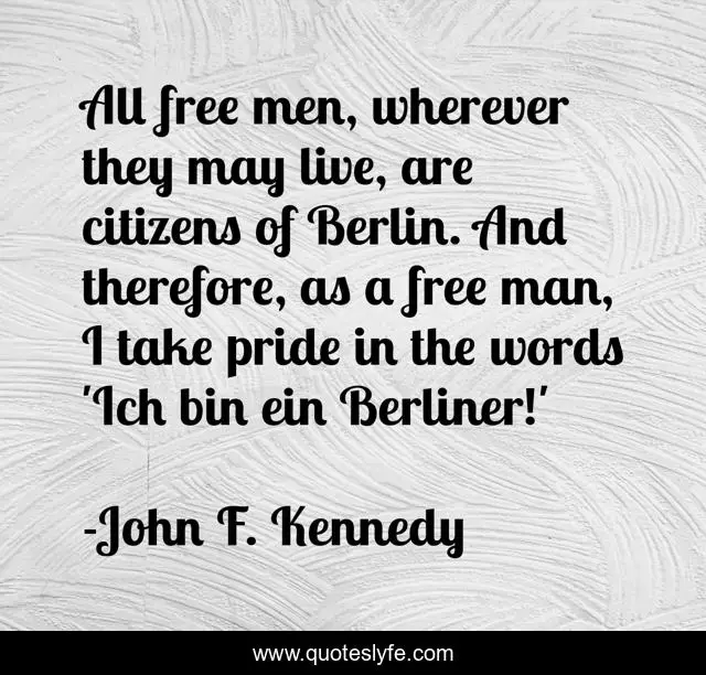 All free men, wherever they may live, are citizens of Berlin. And therefore, as a free man, I take pride in the words 'Ich bin ein Berliner!'