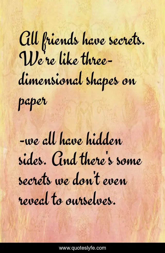 This page presents the quote "All friends have secrets. We're like three-dimensional shapes on paper". Author of this quote is we all have hidden sides. And there's some secrets we don't even reveal to ourselves.. This quote is about bound to accept, nenia campbell,.