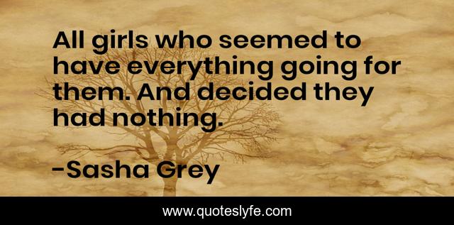 This page presents the quote "All girls who seemed to have everything going for them. And decided they had nothing.". Author of this quote is Sasha Grey. .