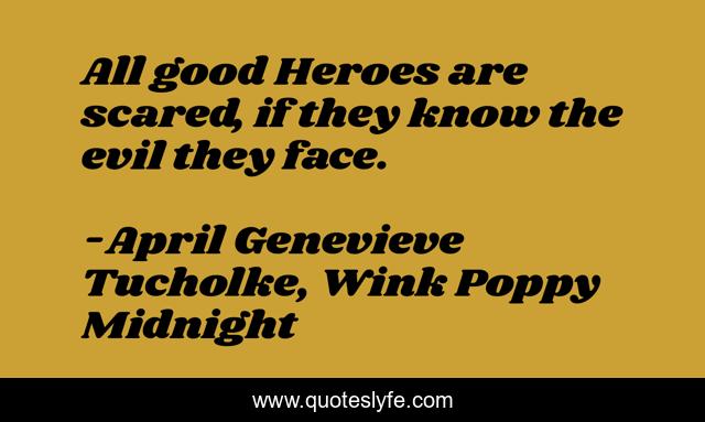 This page presents the quote "All good Heroes are scared, if they know the evil they face.". Author of this quote is April Genevieve Tucholke, Wink Poppy Midnight. This quote is about heroes, evil,.