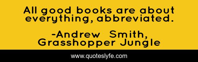 "Andrew Smith, Grasshopper Jungle Quotes." Quoteslyfe.com, 2025. Fri. 05 Dec. 2025. <https://www.quoteslyfe.com/quote/All-good-books-are-about-everything-abbreviated-43011>.