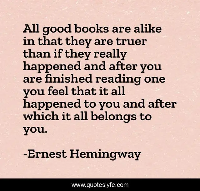This page presents the quote "All good books are alike in that they are truer than if they really happened and after you are finished reading one you feel that it all happened to you and after which it all belongs to you.". Author of this quote is Ernest Hemingway. .