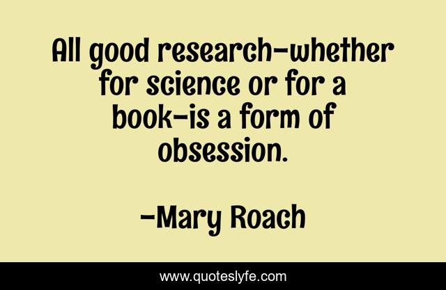 This page presents the quote "All good research-whether for science or for a book-is a form of obsession.". Author of this quote is Mary Roach. .