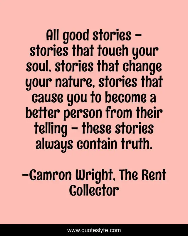 "Camron Wright, The Rent Collector Quotes." Quoteslyfe.com, 2025. Sat. 06 Dec. 2025. <https://www.quoteslyfe.com/quote/All-good-stories-stories-that-touch-your-180721>.