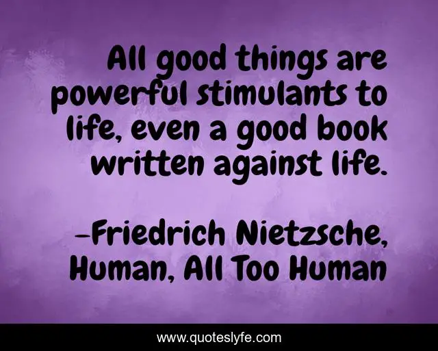 This page presents the quote "All good things are powerful stimulants to life, even a good book written against life.". Author of this quote is Friedrich Nietzsche, Human, All Too Human. This quote is about life, books,.